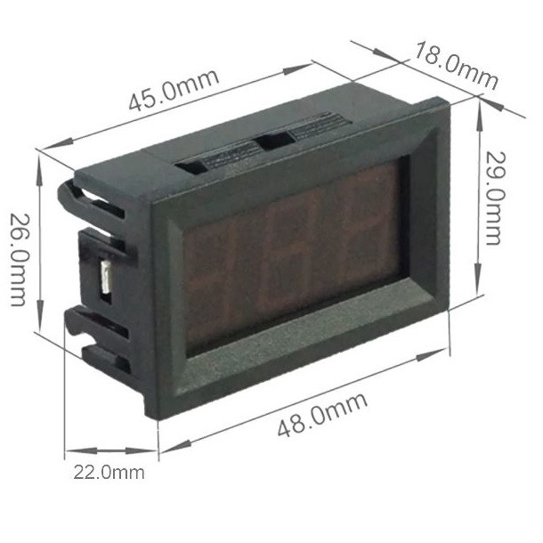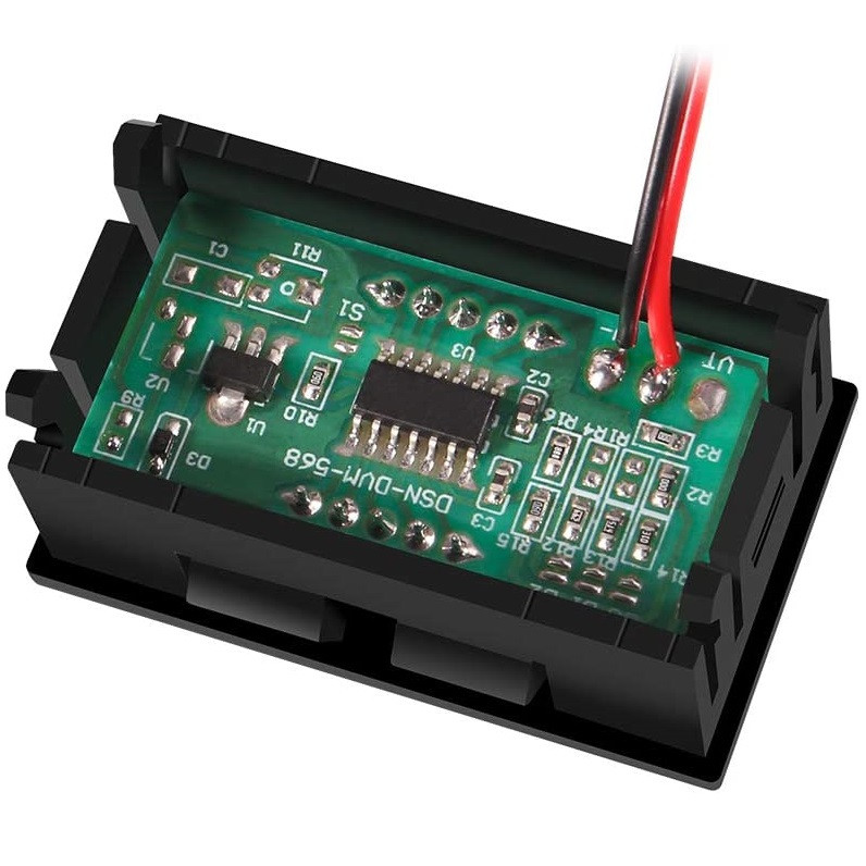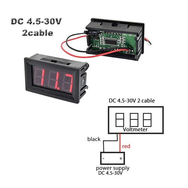 ماژول ولت متر دیجیتال 4.5 تا 30 ولت، برای اندازه گیری و نمایش ولتاژ DC مورد استفاده قرار میگیرد. این ولتمتر 0.56 اینچی، دارای ولتاژ با دامنه 4.5-30 ولت DC و نمایشگر سون سگمنت قرمز رنگ با سایز 0.36 اینچ و دو سیم قرمز و مشکی میباشد. که سیم قرمز به مثبت و سیم مشکی به منفی متصل می شود . به منظور دستیابی به بهترین دقت اندازه گیری، ولت متر به طور خودکار موقعیت نقطه اعشار را با توجه به اختلاف ولتاژ اندازه گیری شده جابجا می کند. از این ماژول می توان جهت اندازه گیری ولتاژ در ماشین و انواع مدارات مختلف در بازه ی 4.5 تا 30 ولت بهره برد. این ماژول ضد رطوبت، ضدآب، ضد شوک و ضد روغن نیست. لطفا هنگام استفاده رعایت کنید.
