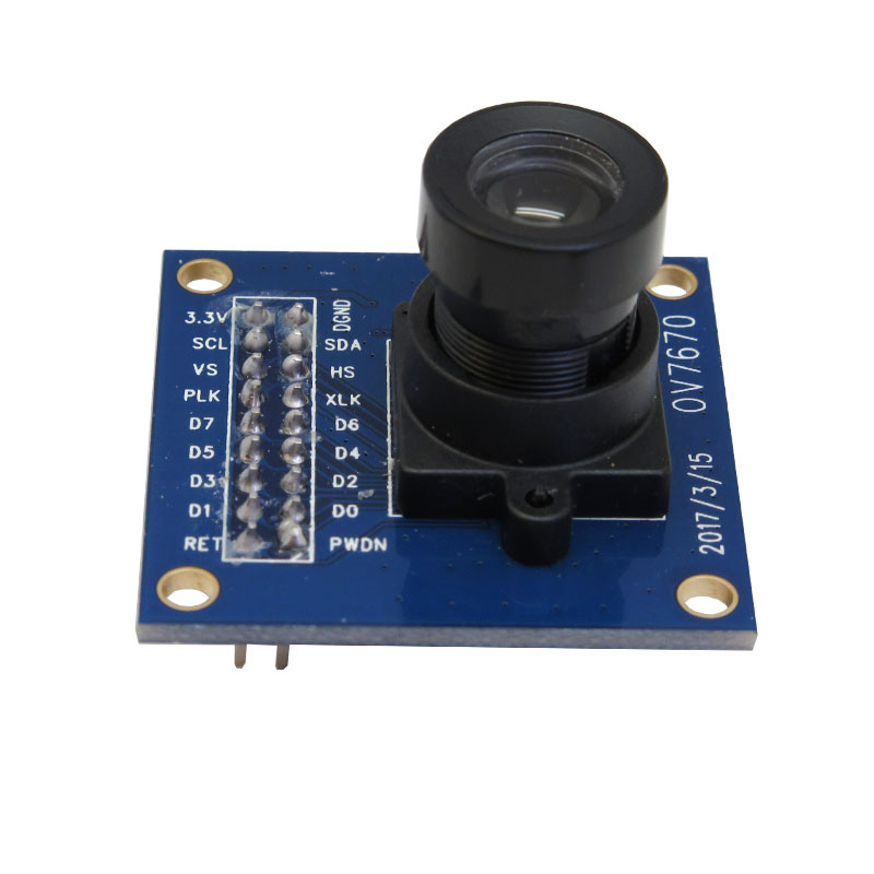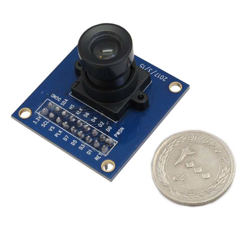 ماژول دوربین OV7670 محصول camerachip یک سنسور تصویر کوچک با ولتاژ کار پایین است و کلیه عملکردهای یک تراشه دوربین VGA و پردازنده تصویر را ارائه می دهد. این سنسور می تواند از طریق کنترل باس SCCB فول فریم ، نمونه گیری و تفکیک پذیری 8 بیتی از داده ها را تولید کرده و تصویر VGA حداکثر به 30 فریم در ثانیه برساند. بوسیله این ماژول کاربران می توانند کیفیت تصویر، قالب داده و حالت انتقال را به طور کامل کنترل کنند. همچنين توانايي تنظيم خودكار بهره AGC ، تنظيم تراز سفيدي AWB از دیگر ویژگی های این ماژول می باشد. مدارات بایاسینگ و رگولاتور 1.8 ولت بر روی خود برد قرارگرفته است. تمام مراحل عملکرد توابع پردازش تصویر می توانند از طریق رابط برنامه نویسی SCCB، از جمله منحنی گاما، تعادل رنگ سفید، اشباع و کروما استفاده کنند.