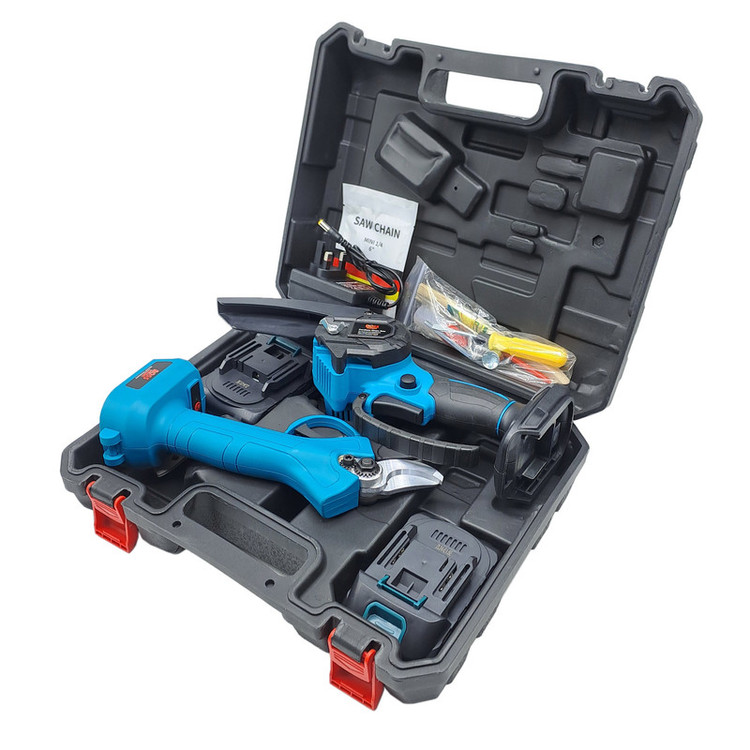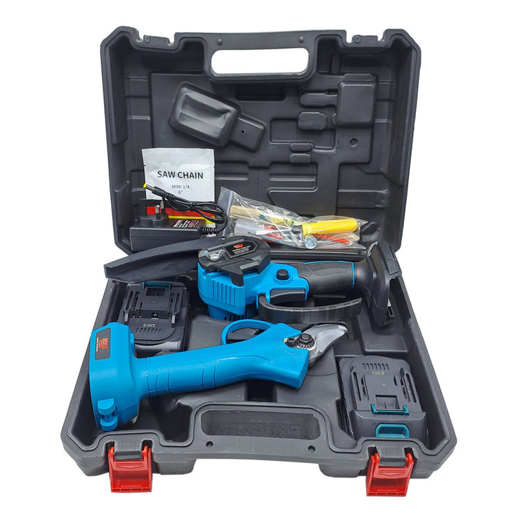 آچار آلن ، آچار تعویض تیغه ، 2عدد باتری 88 ولت ، شارژر ،زنجیر ، روغندان ، تیغه 15 سانت