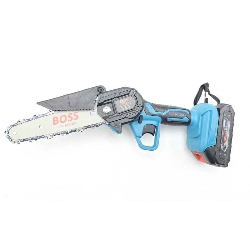 کیف حمل ضد ضربه - روغن دان -آچار - پیچ گوشتی - یک عدد ساطوری - یک عدد زنجیر - یک عدد محافظ براده - یک عدد شارژر باطری - دو عدد باطری لیتیومی 25 ولتی باس -