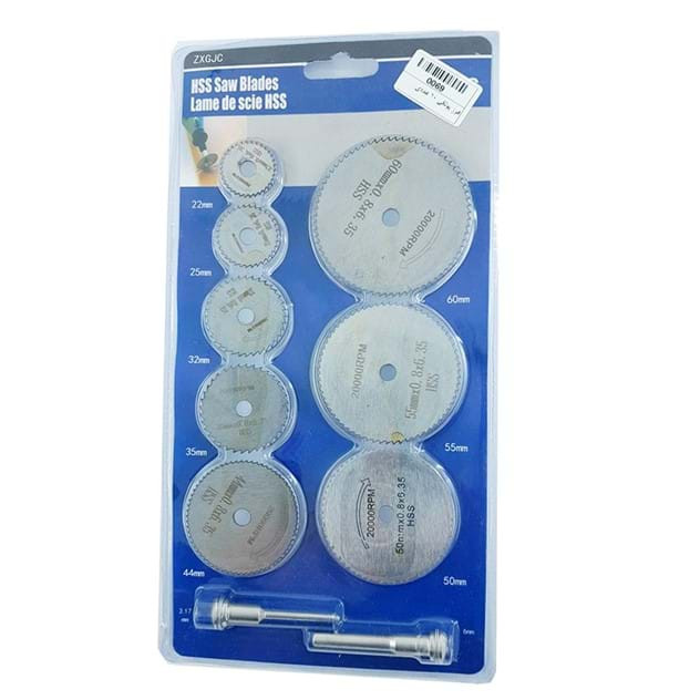 ست فرز اره 10 پارچه مدل G یک پک کامل در سایز های 22-25-32-35-44-50-54-60 میلیمتر است که به همراه شفت 6 میلیمتر و 3 میلیمتر مناسب برای فرز انگشتی و فرز مینیاتوری و دریل هست و مناسب برای برش و ظریف کاری چوب و پلاستیک است .