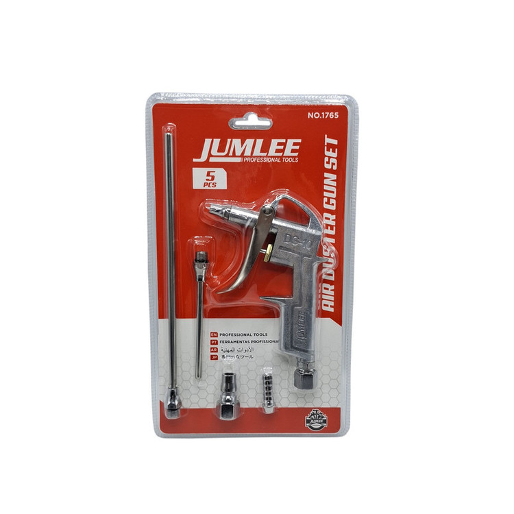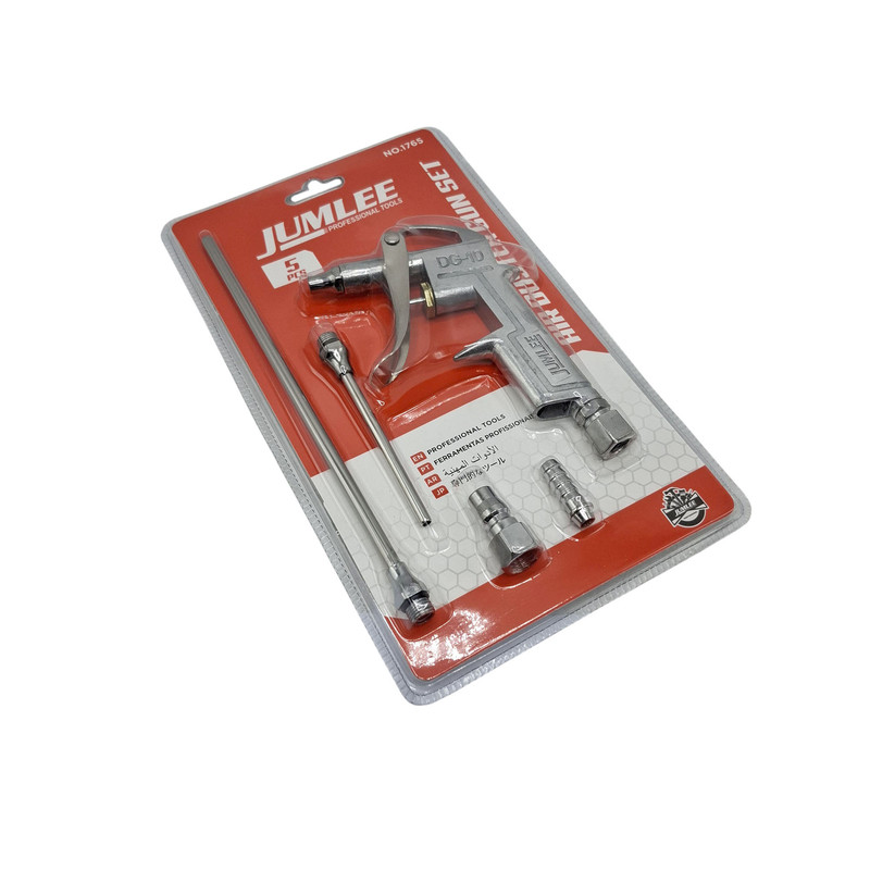 - تفنگی باد جاملی مجموعه 5عددی - دارای دو عدد نازل به طول : 10و 21سانتی متر - دارای دو عدد کوپلینگ بدنه کاملا فلزی مقاوم - قابل اتصال و استفاده با کمپرسور هوا - با بهترین کیفیت عرضه شده در بازار